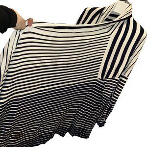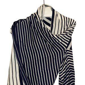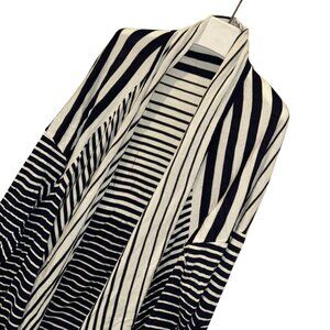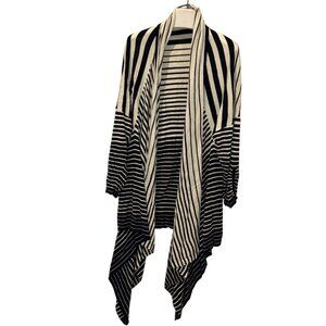Attitudes by Renee black white French Breton Nautical Striped cardigan waterfall open sweater