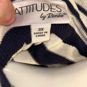 Attitudes by Renee black white French Breton Nautical Striped cardigan sweater3X