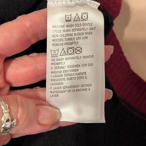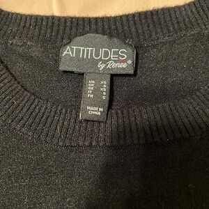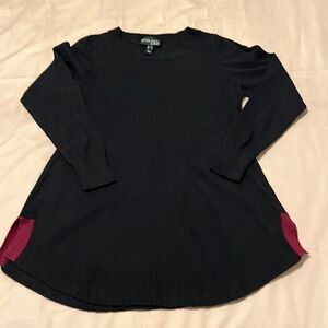 Attitudes by Renee szS black w/burgundy trim rounded hem side slits sweater EUC