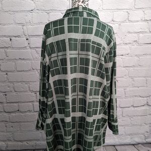 This is a women's pre-owned long sleeve stretch knit plus size 4x / 5x button front SharkBite hem with a check print and has pockets and is made by Attitudes by Renee