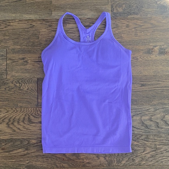 Brighten your look with this radiant purple tank. Features a ribbed texture and racerback style. Ideal for layering or wearing alone. This tank top by attraco is designed with a fitted silhouette that enhances your shape. The sleeveless style and scoop neckline provide a classic and comfortable fit, perfect for both casual and athletic occasions. Made from a stretchy fabric, it ensures ease of movement and a flattering look. Ribbed material with built in bra and removeable cups. I love these tanks. They normally run on the small size so I usually size up. This one fit true to size and was too big. Smoke free home. No stains or tears. Only worn a couple times.