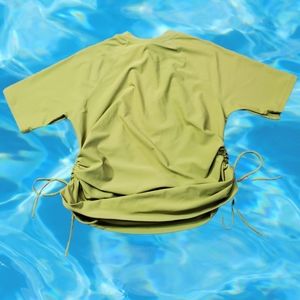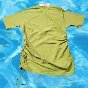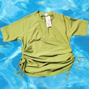 NWT Attraco Rash Guard Woman's Short Sleeve Swim Quarter Zip with Drawstring sides Rash Guard Swim Top. With UPF50+ Protection