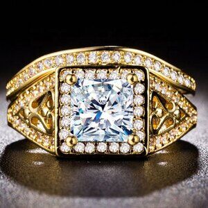 "Attractive 18K Gold Plated CZ Wedding Couple Ring, FB16FA1032