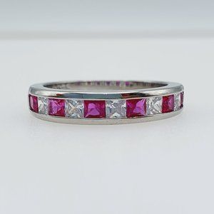 "Attractive 925 Silver Plated Red Cubic Zirconia Couple Ring, FB16FA1083