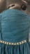 Elegant strapless dress in shimmering deep turquoise. Sparkling waist rhinestones and shimmering material. Very pretty and pleasing to the eye.