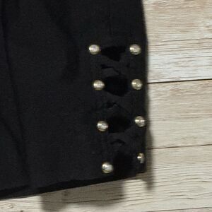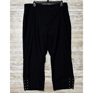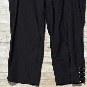Attyre Woman Pull On Black Capri Pants Size 16W Stretch Flat Front Gold Buttons