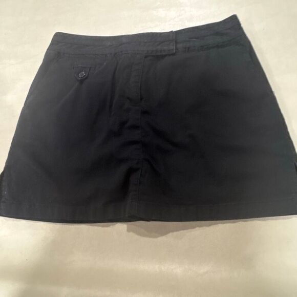 Attyre Womens Skort Shorts, size 10, Black. This skort has all the features you are looking for: side slash pockets, front zip, back pockets, side slits, shorts underneath. Fabric content: 97% cotton, 3% spandex. Easy care: machine wash / dry. Waist measured laying flat: 16.5”. 3.5” inseam. Great condition.