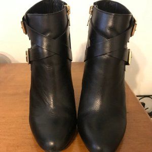 Atwell Maggie Black Leather Bootie w/Gold Buckle