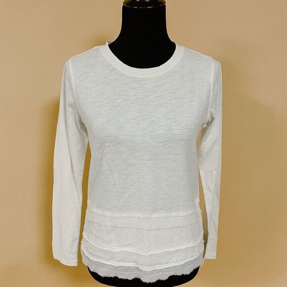 Atwell Spa White Cotton Frayed Tiered Long Sleeve Top Leah Tee Size S NWT