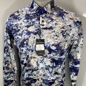 Au Noir Men’s Magnani Woven Stretch Button-Down Shirt – Indigo Abstract – Size L