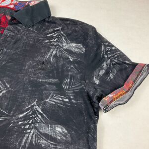 Au Noir Polo Shirt 4/ Large Black Abstract Print Contrast Trim Casual Party Top