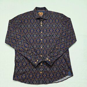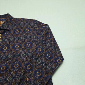 Au Noir Shirt Mens Medium Paisley Retro Button Up Mystique Long Sleeve Stretch