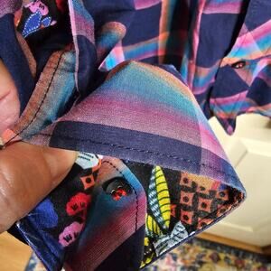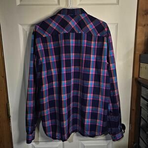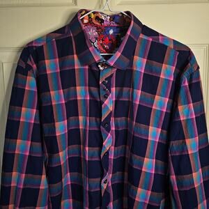 Au Noir Upscale Dark Purple Multicolor Plaid Dress Shirt Men's 6 Made in Turkey. (size 6 on au noir site is 2xl-although this fits more like an XL (100% cotton) - please see following layflat measurements). Layflat Measurements are: Length 29 / Chest (pit-to-pit) 25 / Shoulder Width 21 / Sleeve Length (from shoulder seam) 27. Elevate your wardrobe with this Au Noir Dark Purple Multicolor Plaid Dress Shirt. Made from high-quality materials in Turkey, this shirt features a striking plaid pattern and a comfortable fit. Perfect for both formal and casual occasions.