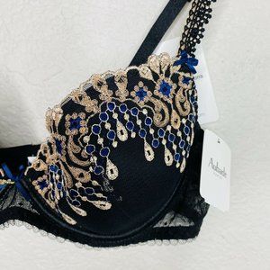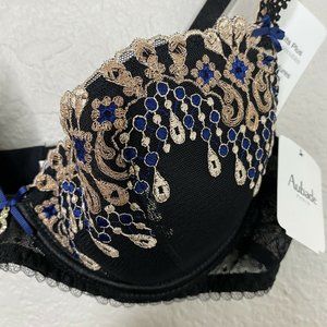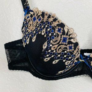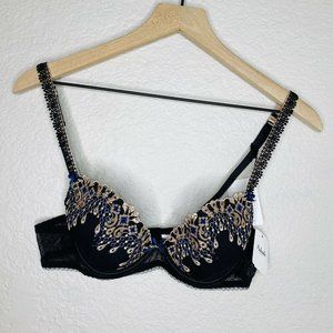 Aubade Paris Joyau Eternel Plunge Push Up Bra 36A Black Padded Embroidered Jewel