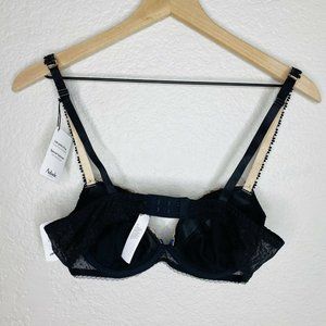 Aubade Paris Joyau Eternel Plunge Push Up Bra 36A Black Padded Embroidery Paris
