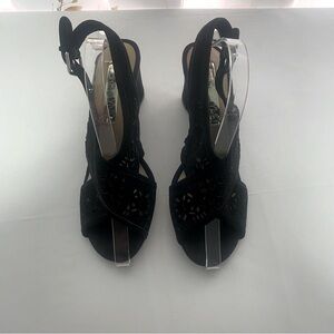 Aubrey Lynn “Veronica”, Slip On Wedge, Open Toe Shoe, Size 7.5M