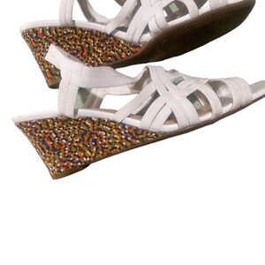 Aubrey Lynn White Strap Sandals Size 8 M Colorful Cork Wedge