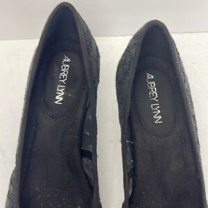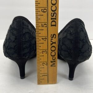 Aubrey lynn Fawne Black Lace Microsude Heels size 9 whimsigoth dark romantic