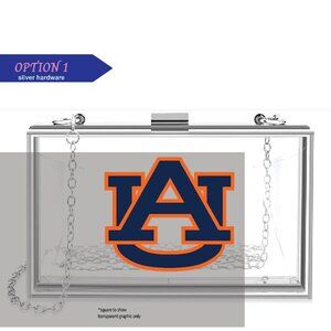 Stylish clear acrylic clutch with Auburn Tigers graphic. Perfect for game day!