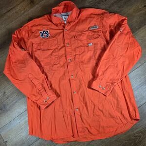 Auburn Tigers Columbia PFG Shirt Mens L Orange Vented Fishing Button Up NCAA