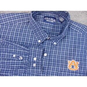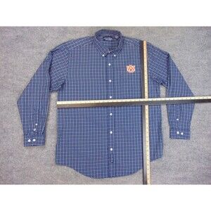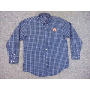 Auburn Tigers Shirt Mens Large Blue White Plaid Button Up Long Sleeve
