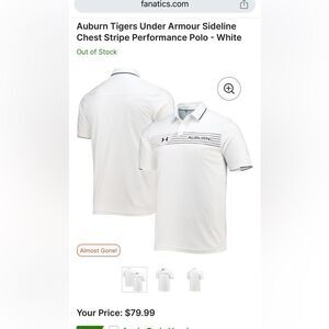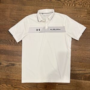 Auburn Tigers Under Armour Sideline Chest Stripe White Performance Polo Size M