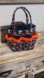 Hand Crafted Auburn University Tigers themed tote/organizer /bingo bag with vibrant orange accents. Features large interior compartment 8 exterior pockets and a sturdy handle.