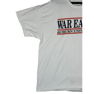 This Auburn University “War Eagle” graphic T-shirt comes in a comfortable 2XL size with a soft white cotton feel and bold collegiate lettering across the chest. The shirt shows typical light wear but no major flaws, and the faded tag does not affect wearability. Measurements are approximately 30" in length and 26" pit-to-pit, giving it an oversized and relaxed fit perfect for fans, students, and collectors of Auburn spirit gear. Its broken-in feel adds to the vintage-style aesthetic, making it an ideal everyday tee or game-day essential.