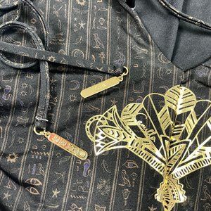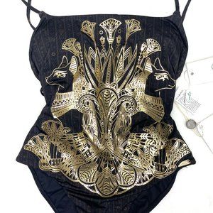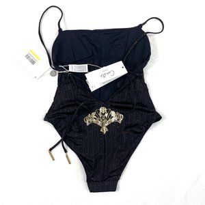 Authentic Stunning CAMILLA Metallic COBRA KING STRAIGHT NECK HIGH LEG ONE PIECE XS. bold yet feminine one-piece swimsuit designed for sun-basking goddesses; the Cobra King Straight Neck High Leg One Piece is a hypnotic masterpiece. Crafted with a soft printed Italian Nylon Elastane referencing ancient Egyptian animals in unparalleled extravagance against a midnight backdrop, this striking one piece designed for B-C cups features removable cups, a retro high leg line and moderate bottom coverage and is polished with hand-applied crystal embellishments. All CAMILLA swim pieces are crafted with love to last and retains both colour and shape beautifully. To care for your CAMILLA swim piece, simply cold hand wash and dry flat. A daring swim piece from this collection, we love to pair back with matching Short Sarong.