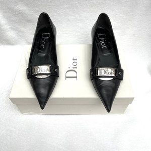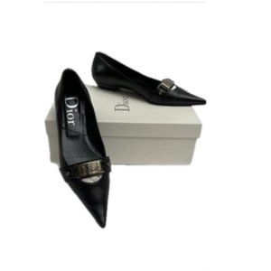 Auc DIOR Flat Pointy Black Ballerina Shoes 6
