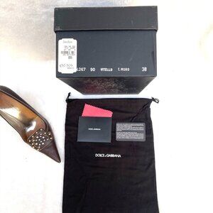 Authentic Dolce & Gabbana Vitello T.Moro studded point Toe heels IT38 US 8. excellent condition with normal wear. Comes with original box, booklet, cleaning cloth and dust bag. Please, inspect the pictures for condition, as a part of description! Ask questions! Smock and pets FREE home! Check out my other listings to bundle & save!