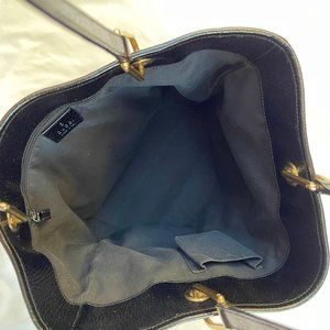 Authentic Eclipse GG Canvas/patent leather Medium Tote. Black canvas with leather straps and undercarriage with metal feet. Great condition. Very Minor scratches on the Gucci rivets where straps are (see pix), corners has rubs.Very clean. Very well loved. No dust bag/box.gold-tone hardware, signature engravings, and protective feet on the base. The interior has black lining with a zip pocket and a cellphone pocket. It's a medium tote with space for your daily necessities. Made in Italy.