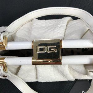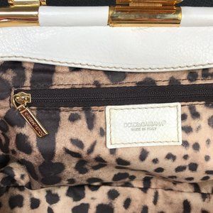 Gorgeous Authentic New with tags. white Elyse Walker Dolce and Gabbana Handbag. super soft Deerskin Pleated body. Microsuede signature animal print lining, Zipper pocket. Brass hardware. 12"X7"X3". drop 5". Authenticity documents include. Made in Italy