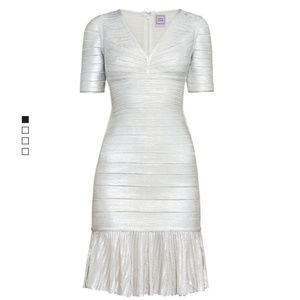 Authentic NEW HERVE LEGER Silver Dress XS $1490 will fit Small