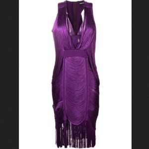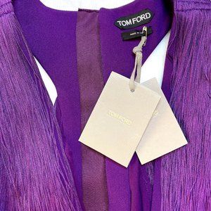 Sold out everywhere! Stunning Authentic Tom Ford Purple V-neck Plunging Racerback Sleeveless Draped-fringe Midi Cocktail Dress size IT 40, US 4/6 Plain weave, chiffon, fringed, basic solid color, deep neckline, sleeveless, no pockets, rear closure, zipper closure, unlined, stretch.TOM FORD cocktail dress in viscose-stretch with draped-fringe. Plunging neckline. Sleeveless; racerback. Sheath silhouette. Back zip. Midi length. Silk/spandex. Trim, viscose/spandex. Lining, nylon. Made in Italy. 97% Viscose, 3% Elastane, Silk, Polyamide. Model 5'9" wearing size 40