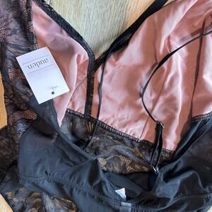 Auden Black Lace One Piece Thong Teddy Bodysuit Black XL