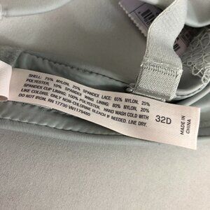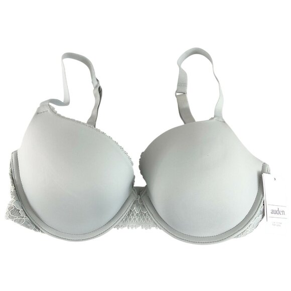 Auden Bra The Radiant Plunge Push-Up Lace Trim Gray 32D