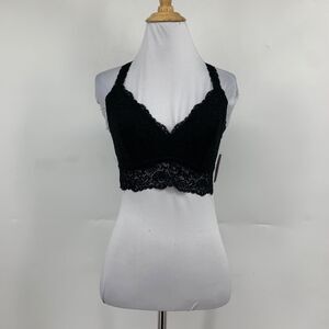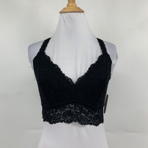 Auden Bralette Womens M Medium Black Lace Longline Racer T Back Stretch V Neck