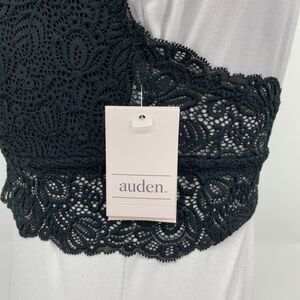 AUDEN BRALETTE WOMENS M MEDIUM BLACK LACE LONGLINE RACER T BACK STRETCH V NECK