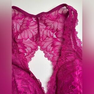 Auden Bralette XS Lace Stretchy Pullover V Neck Fuchsia