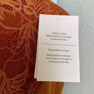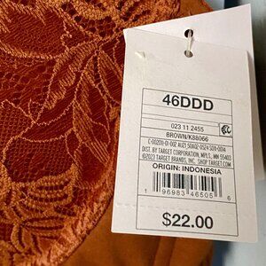 Auden Lightly Lined Balconette Coverage Underwire Bra 46DDD Brown Lace NEW NWT