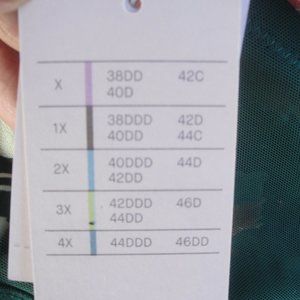 Tag shows that this 1X is compatible with 38DDD, 40DD, 42D and 44C