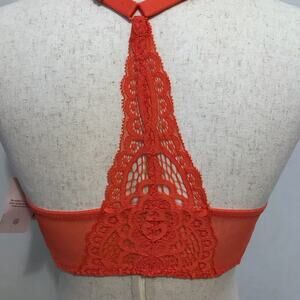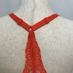 NWT. Plunge Coverage Push Up Front Close Bra for Women Size 32D. Orange, lace overlay, T-back, adjustable slides, stretchy wings, thicker padding towards bottom cups, underwire. Pictures are part of description.