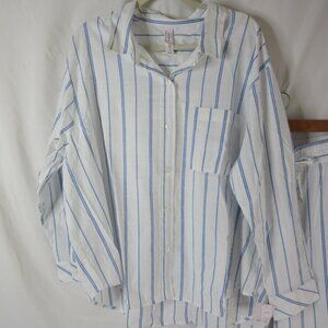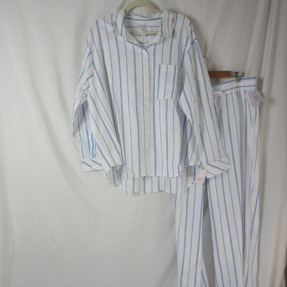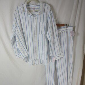 Auden Pajama Set 2 Piece Blue White Striped Long Sleeve & Pants Size XXL NWT