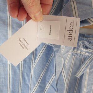 Auden Pajama Set Blue White Striped Shorts Button Down Short Sleeve Size XXL NWT