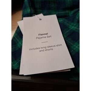 The Auden Sleepware Green Mini Check in size XL is a cozy and stylish pajama set designed for women. Made from 100% cotton flannel, this set features a long sleeve top with a collared neckline and button closure, perfect for keeping warm during the winter and fall seasons. The green check pattern adds a playful touch to the overall look, making it a comfortable and attractive choice for bedtime.