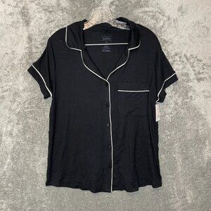 Auden Women Cloud Knit Comfy Lightweight Stretch Button Front Pajama Top M Black