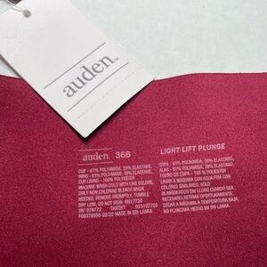 Auden Women Light Lift Plunge Bra 36B T Shirt underwire Stretch Sides Wine 1262