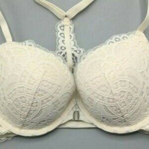 Auden Women’s Bra 32C White Radiant Plunge Push Up Underwire NEW