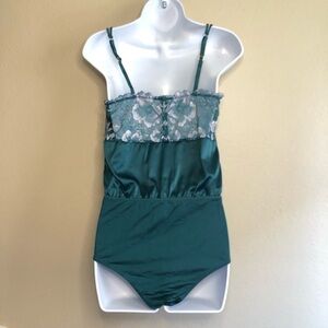 Auden Women's Square Neck Bodysuit Floral Laca Teal Size S